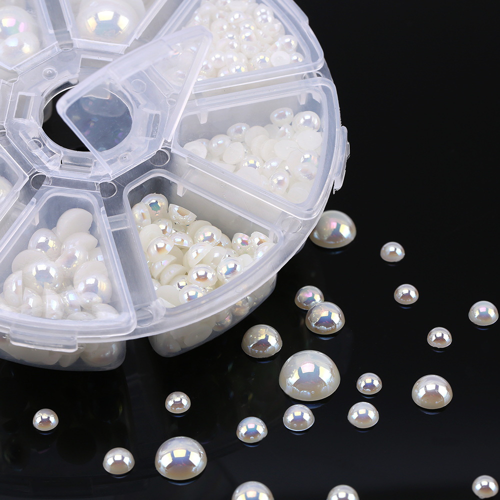 国境を越えて人気の電気メッキab色abs平底半円真珠8格丸箱セットdiyアクセサリー部品