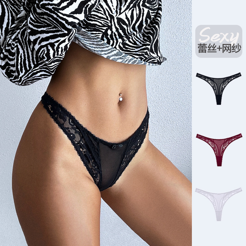 フランス式のセクシーなレースのドリルのアルファベットのセクシーな低い腰の熱い透明なギャルの少女の純粋な欲の薄い夏の欧米の下着