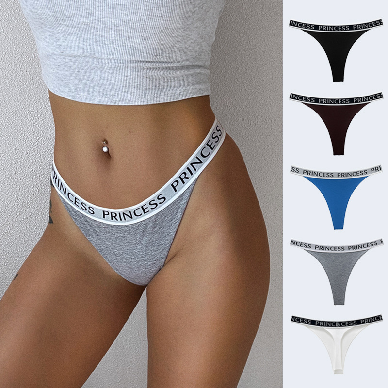 おしゃれなストライプのTバック、レインボーリブ編みコットン、セクシーで純粋な欲望、スポーツ風レタープリント、欧米風ビキニ、女性用純綿下着
