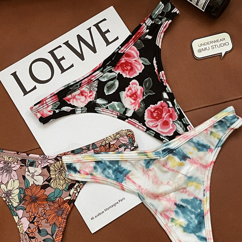 ビキニtパンツファッション落書き花個性純欲氷糸砕花夏模様無痕ギャル水泳パンツ