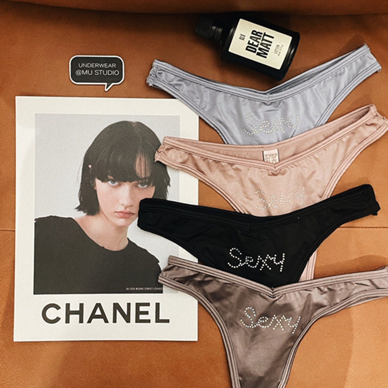 セクシーなt字のズボンのサテンのアイロンのドリルのアルファベットのtズボンの氷の糸の無痕の純粋な欲のギャルの水ドリルのビキニの欧米の下着