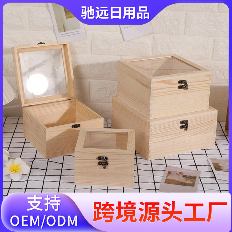 馳遠木製お土産包装箱空箱喜糖箱ガラス蓋開窓永生花木製包装箱お手