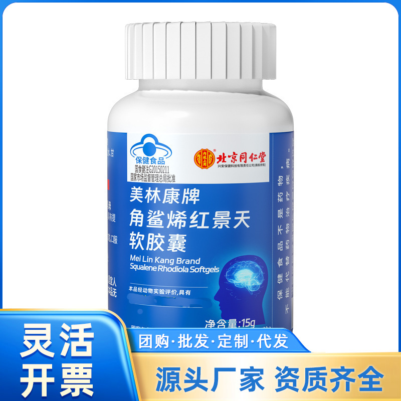 北京同仁堂内廷では美林康牌スクワラン紅景天ソフトカプセル15gで代理しています。