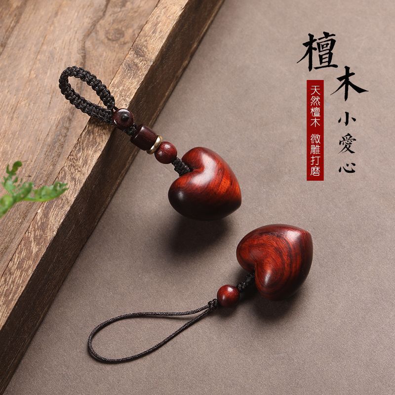 紫檀木の小さい愛の車のキーはネットの赤い携帯のチェーンのペンダントを掛けて男女のキーチェーンの縄を飾ります。