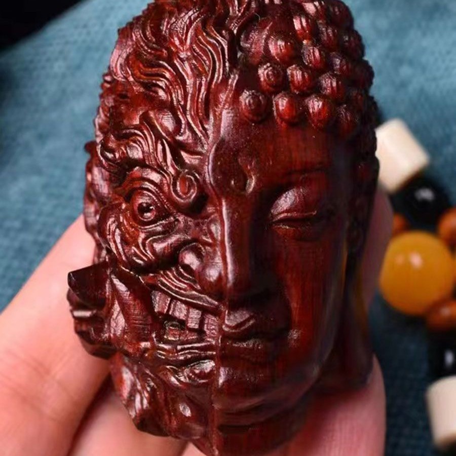 善悪の違いは一念の間にある。手持ち品、文玩、黄楊木のペンダント、紅木の携帯用木彫り仏頭。