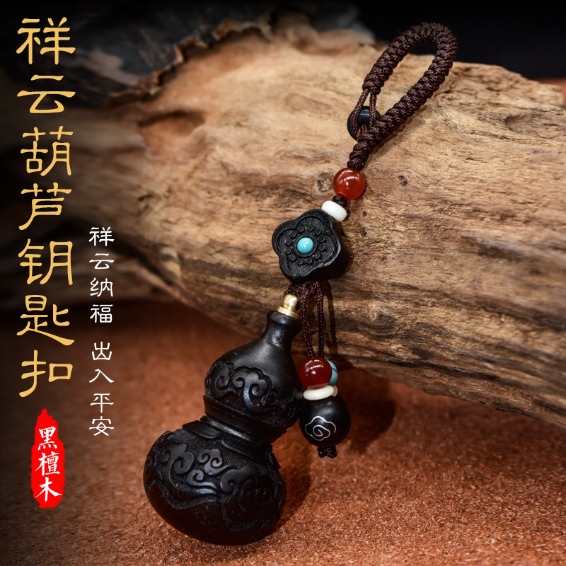 黒檀祥雲出入葫芦キーホルダー 車の鍵飾り 男女兼用バッグ飾り
