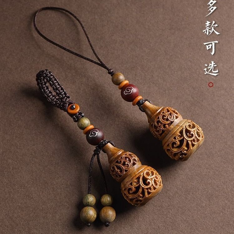 花梨の透かし彫りの香りの袋のヒョウタンの花瓶のペンダントの木の彫刻の拡香器の装飾品のキーホルダーの携帯電話のペンダント