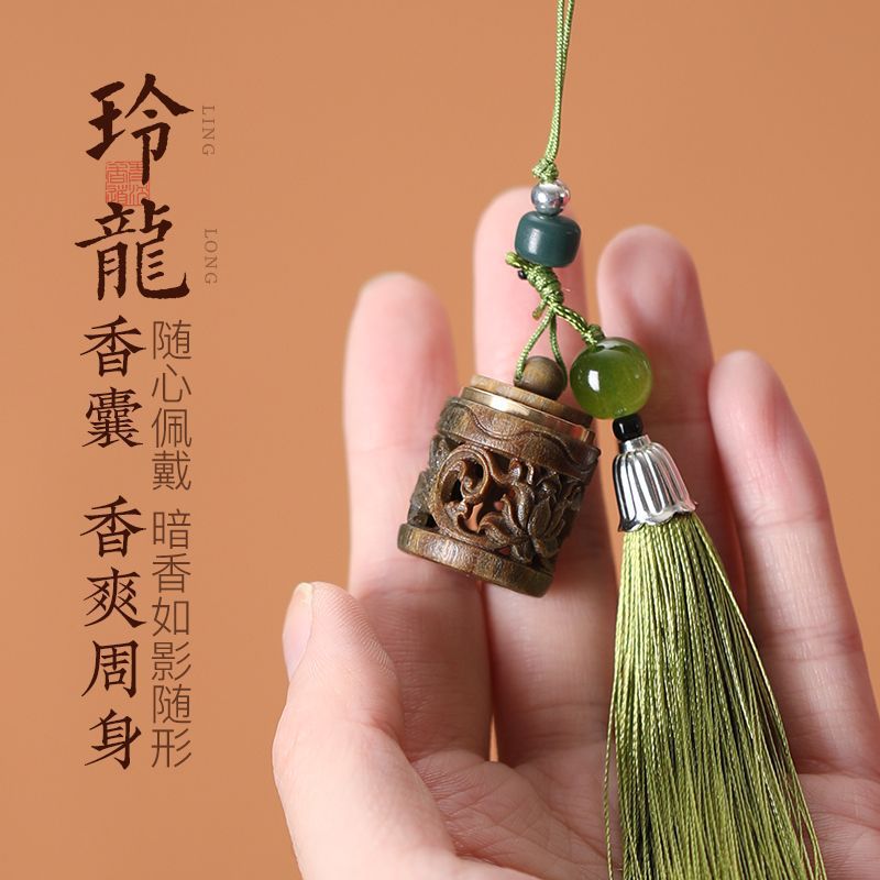 古風の緑の檀木の精巧な香嚢のヒョウタンの透かし彫りの香嚢のボールは木を掘って香丸のボールを掘って持ち歩いて香薫のボールを身につけます。