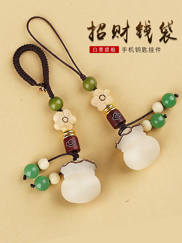 創意手作り菩提個性福袋ストラップ自動車キーホルダーカップルファッション財布掛け