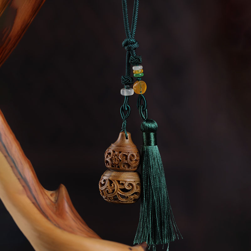 花梨の透かし彫りの香りの袋のヒョウタンの花瓶のペンダントの木の彫刻の拡香器の装飾品のキーホルダーの携帯電話のペンダント