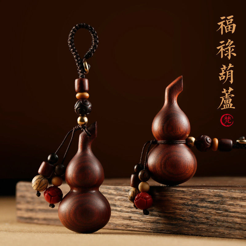 紫檀木の小さいヒョウタンの自動車のキーホルダーのペンダントのアイデアの高級な平安は男女の車の上でぶら下がっているチェーンの縄を輸送します。
