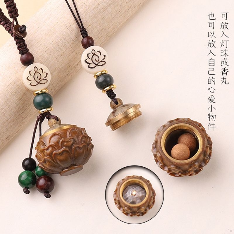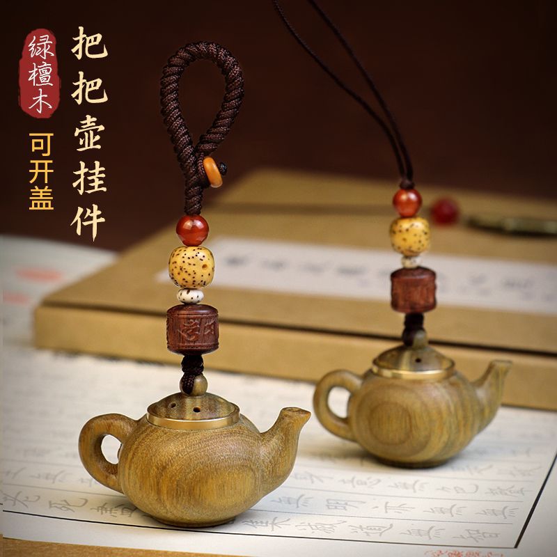 緑檀木の透かし彫りのティーポットの香嚢はポットのキーホルダーを手作りの携帯電話のキーホルダーをペンダントします。