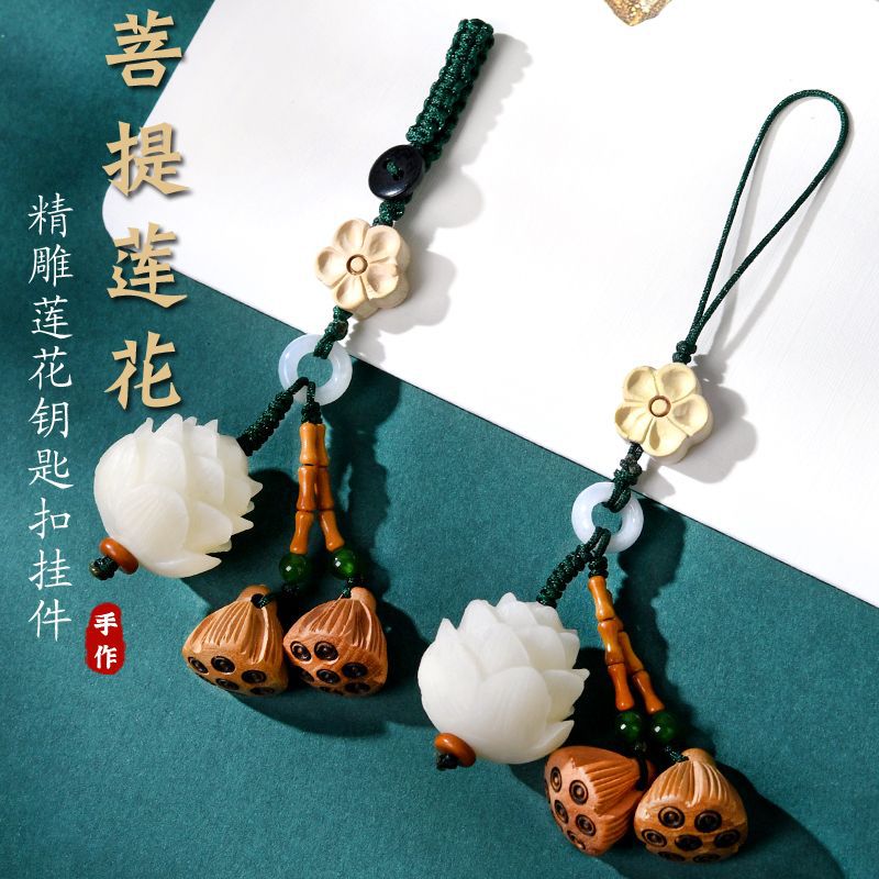 いいことが続いている白玉菩提根蓮の車のキーホルダーは男女の精巧な個性の携帯チェーンのペンダントです。