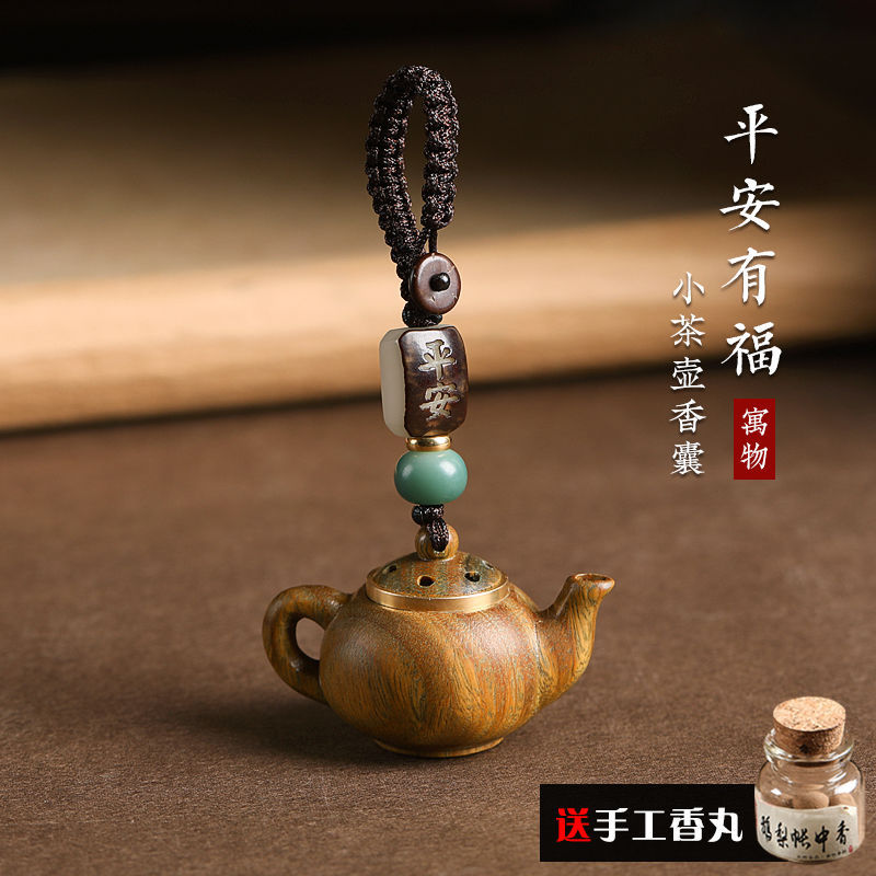 緑檀木は壺のティーポットの香嚢の鍵を自動車のペンダント文に掛けて遊んでいます。