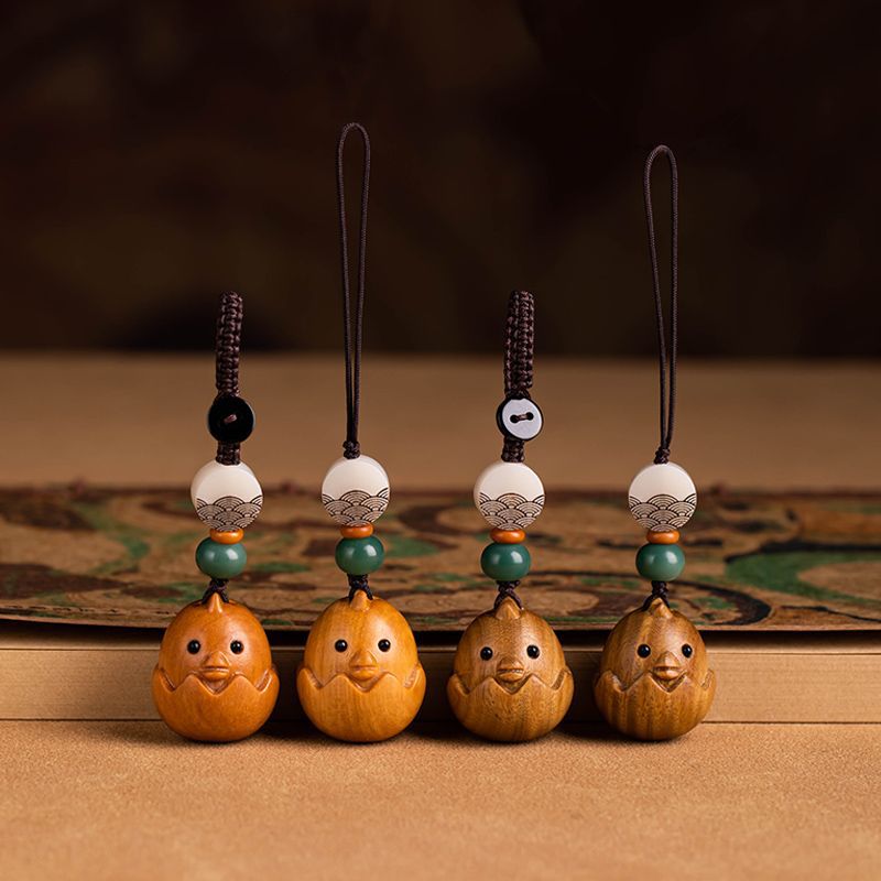檀木生肖鶏自動車のキーホルダーは創意的な破殻小鶏の鍵を掛けて携帯のケースを飾ります。