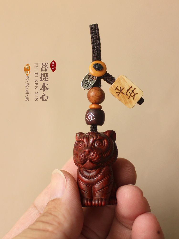 紫檀木生肖虎鍵ストラップ招財平安キーチェーン男女子プレゼント