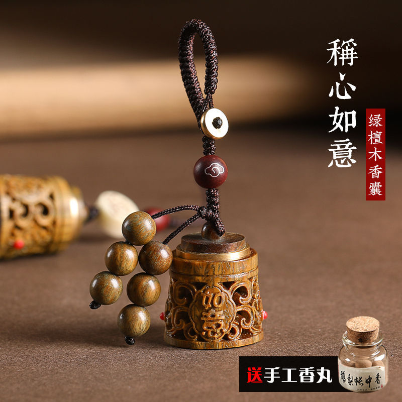 緑檀木の透かし彫りの香嚢の自動車のキーホルダーは男女のカップルの精巧な香丸の携帯チェーンのペンダントを掛けます。
