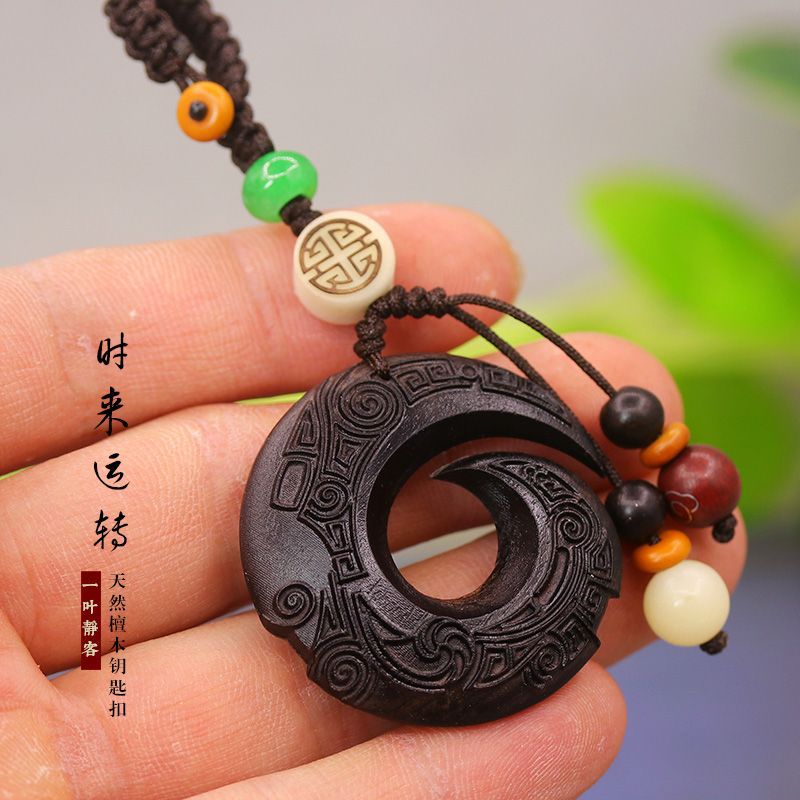 時は運転します。黒檀彫刻のキーホルダーは両面の男性モデルの女性が車のキーホルダーのお土産を運びます。