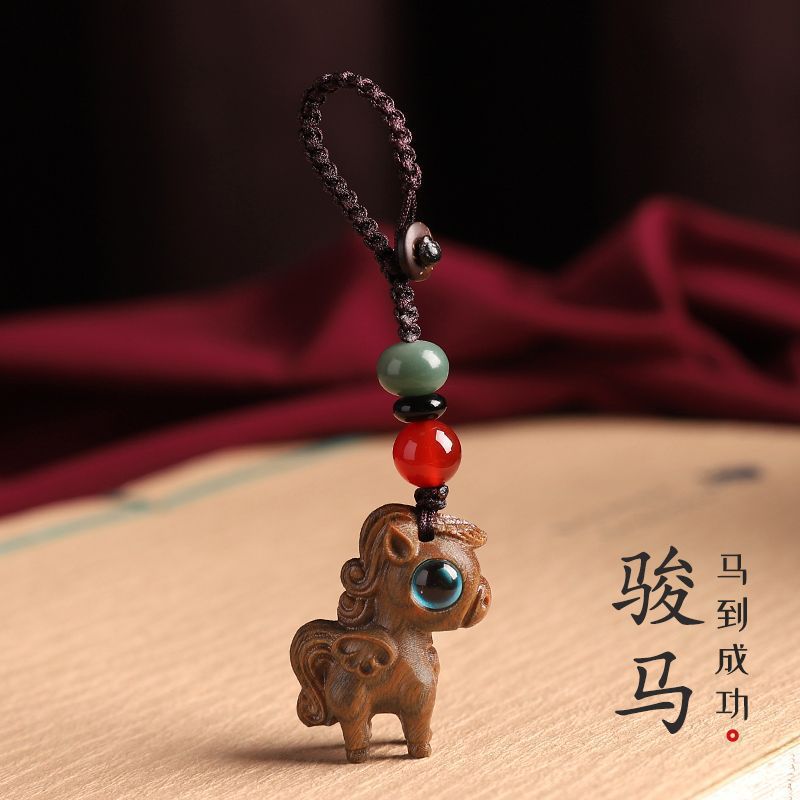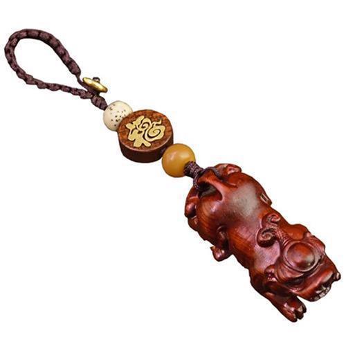 貔貅キーホルダー紫檀木彫り男女兼用クリエイティブバッグ飾りV車キーチェーンペンダント手作り
