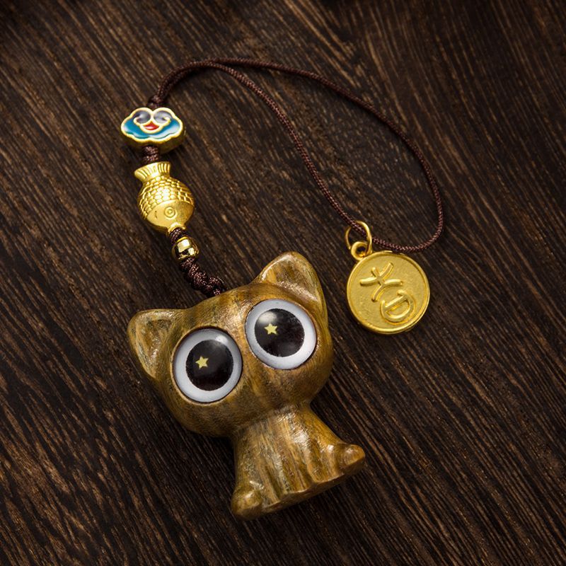 緑檀木の王冠の猫の透かし彫りの福の香の袋のペンダントの創意の拡香器の携帯電話のチェーンのカバンのペンダントのかわいい装飾品