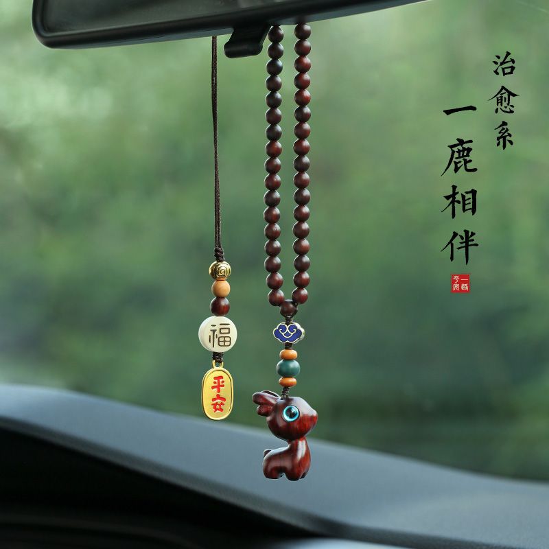 花暖一路平安檀木小鹿自動車バックミラーペンダントかわいい車載内装車吊り下げペンダントアクセサリー