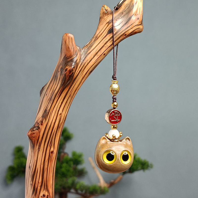 個性的な携帯電話のu盤の縄は猫の檀木のキーホルダーのペンダントの創意的な手編みの縄の自動車のチェーンを包みます。