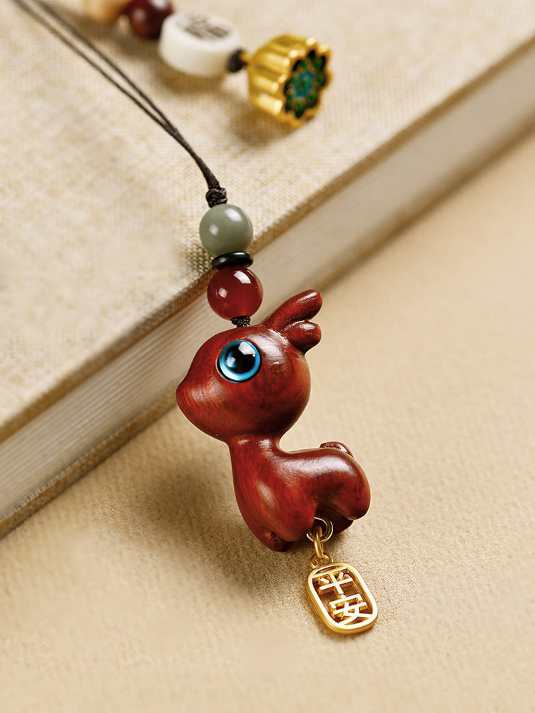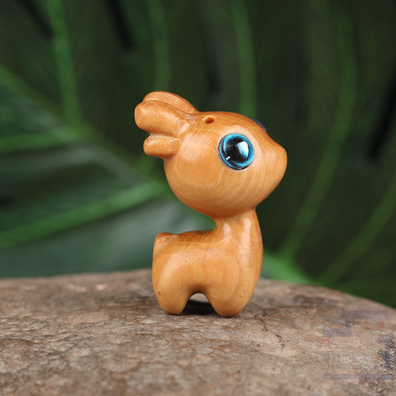 檀木彫刻立体生肖ペンダントアニメ動物実木創意中国風男女diyプレゼント萌え恥鹿
