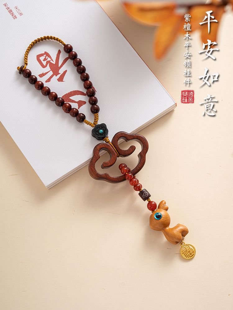 車載紫檀木平安如意自動車ストラップアクセサリー車内ストラップ2023新型バックミラーペンダント置物