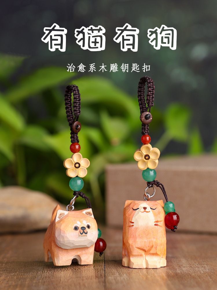 木彫りの柴犬の猫の創意的な自動車のキーホルダーは男女のカップルの精巧でかわいいアニメのペンダントを掛けます。