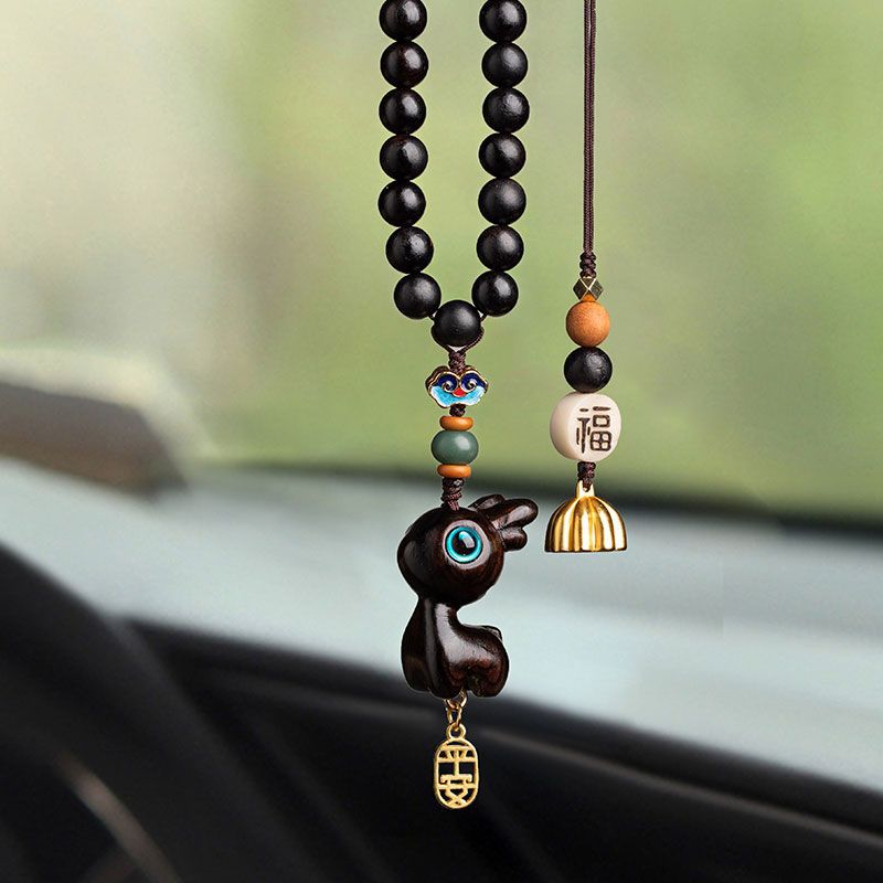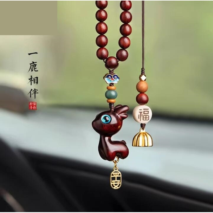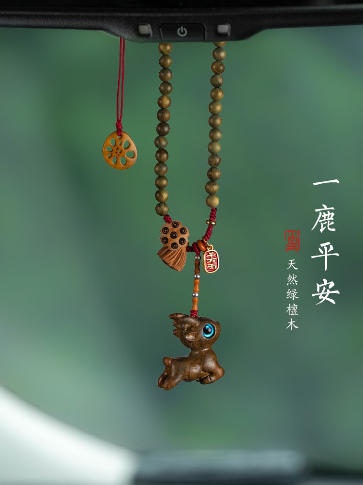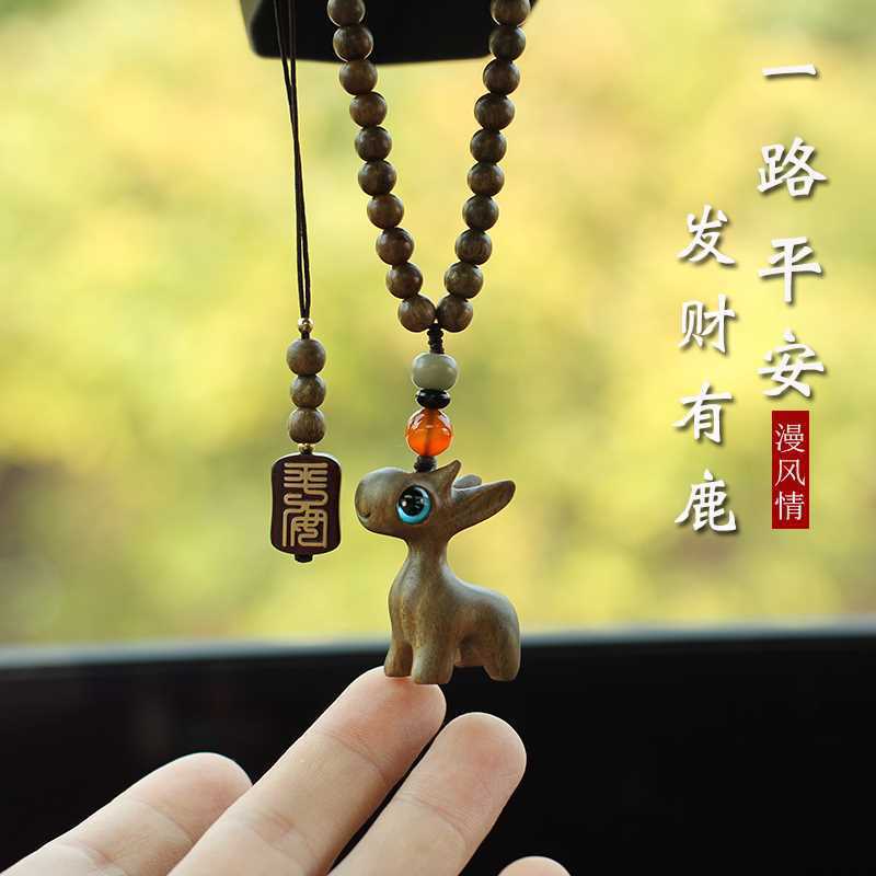 道中平安檀木小鹿自動車バックミラーペンダントかわいい車内装車ペンダント男女クリエイティブペンダント