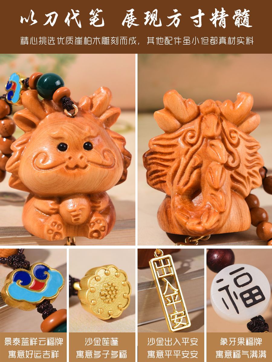 自動車ストラップ龍十二生肖本命年崖柏木彫り車載アクセサリー平安吉祥新車プレゼント男女