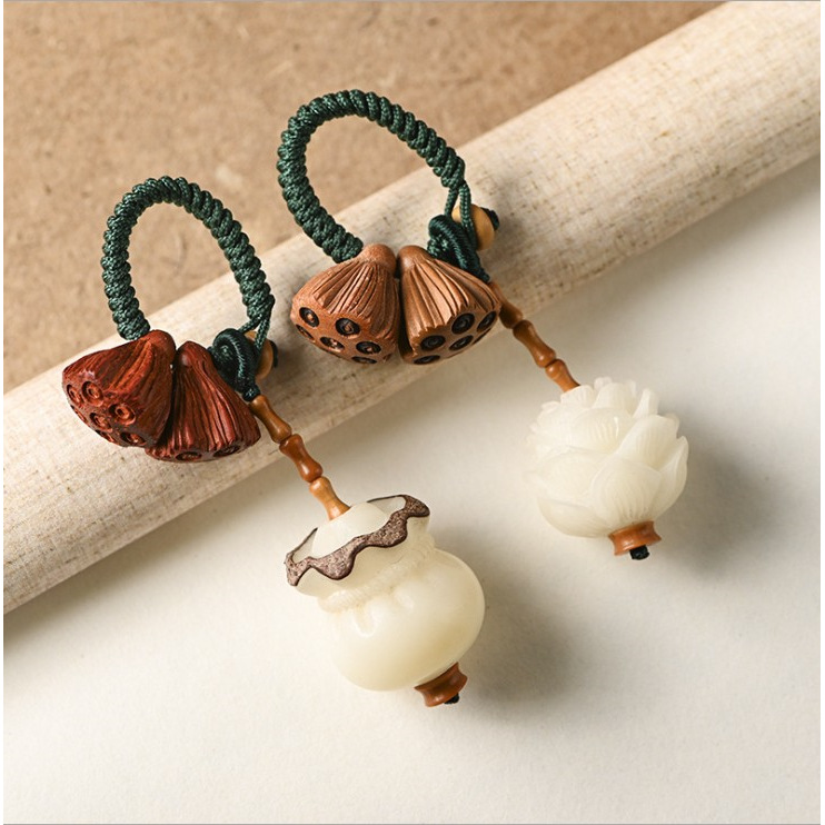 模造菩提蓮の花の車のキーホルダー、桃の木の蓮の実の携帯電話チェーンペンダント、男女カップル用車載ペンダント