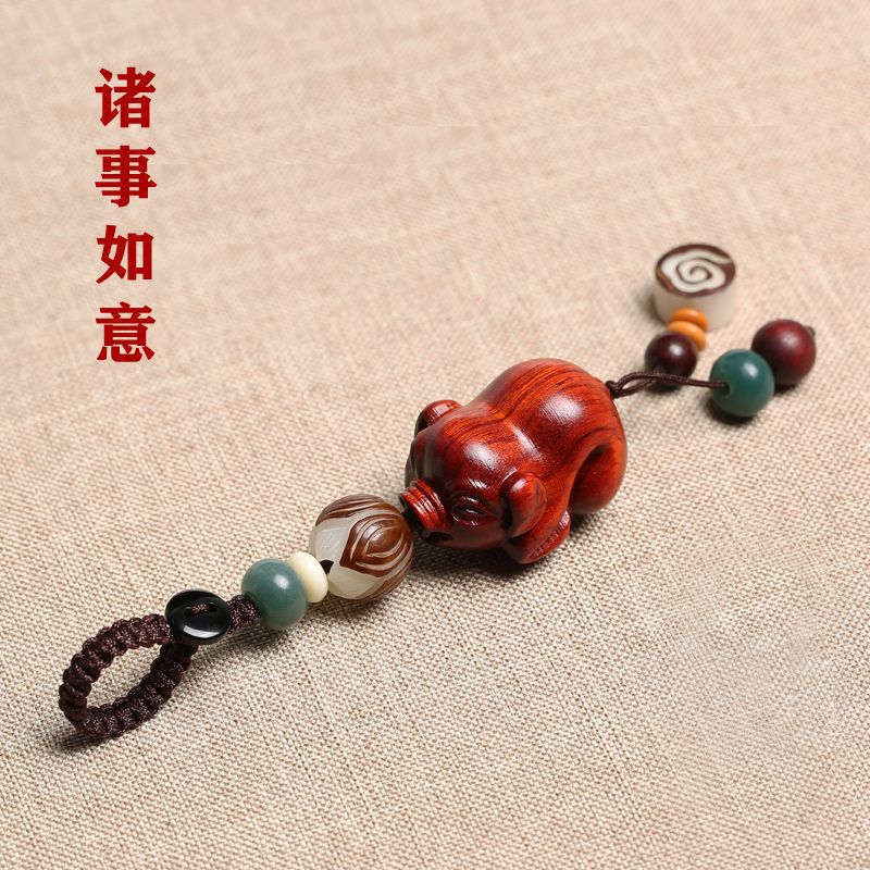【豚事如意】小葉紫檀血檀子豚木製自動車キーホルダー