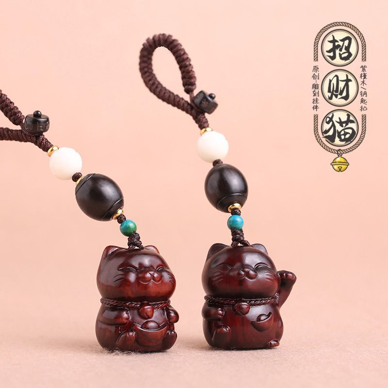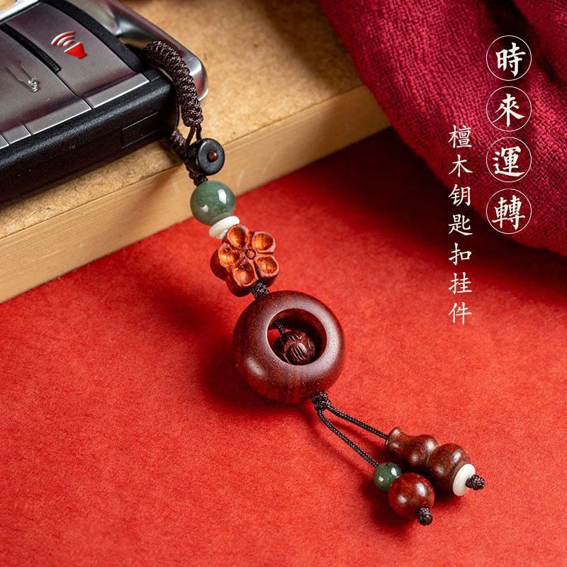 紫檀木の小さい愛の車のキーはネットの赤い携帯のチェーンのペンダントを掛けて男女のキーチェーンの縄を飾ります。