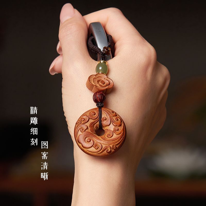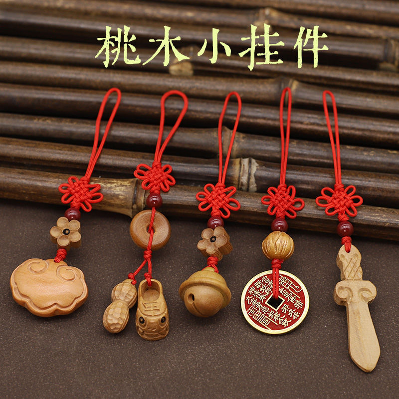 桃木彫刻携帯ストラップ保平安ペンダント創意男女金紫金砂包キーホルダーuディスク小ストラップ