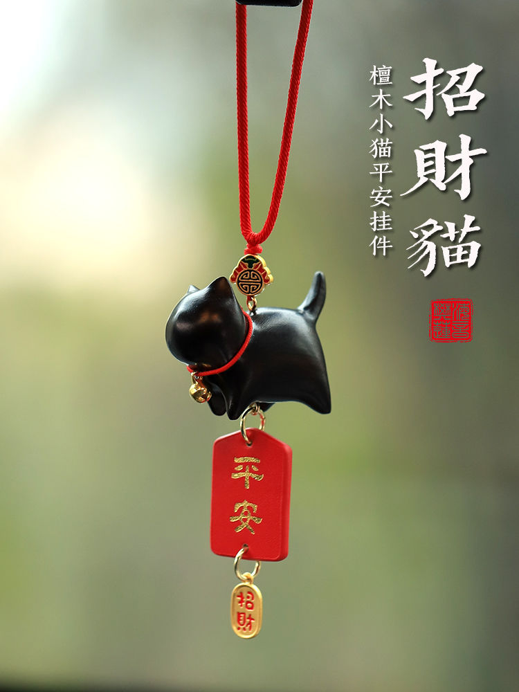 車載白檀猫型オーナメント 車内装飾 吊り下げ飾り バックミラー飾り 2024年新作