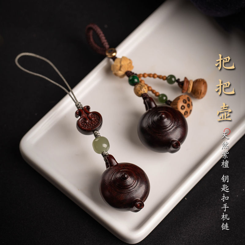 紫檀木は壺の自動車のキーホルダーを持っています。
