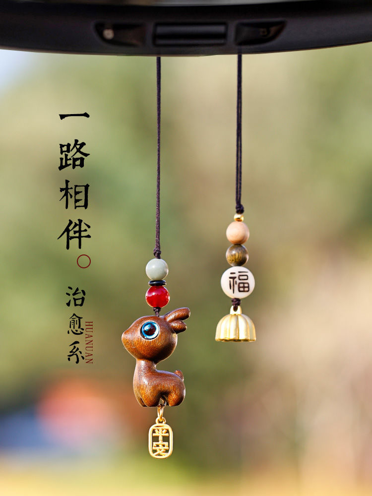 花暖一路平安檀木小鹿自動車バックミラーペンダントかわいい車載内装車吊り下げペンダントアクセサリー