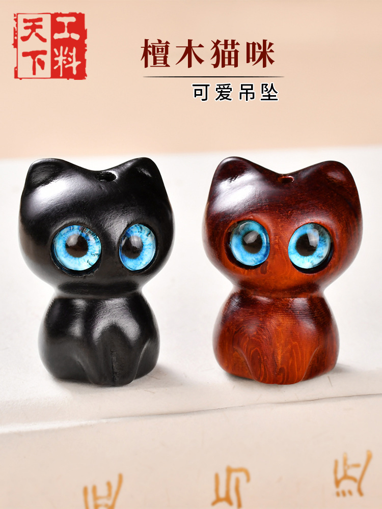 黒檀木彫刻猫ペンダントかわいい動物猫ストラップ携帯チェーンキーホルダー手作りDIY部品