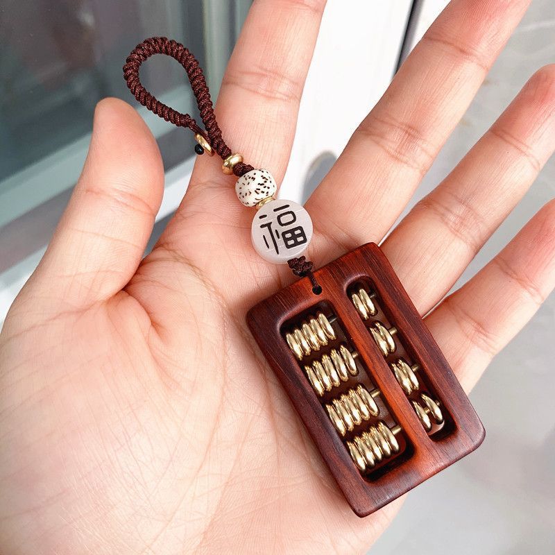 手作りの紫檀木のそろばんのアクセサリーは銅を掛けて祝日の旅行の贈り物の源を掛けて贈り物のキーホルダーを郵送します。