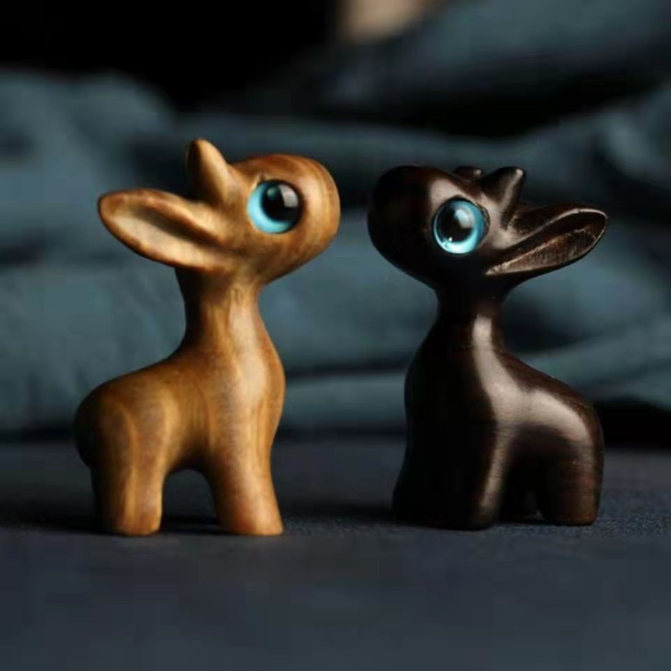緑檀の鹿の置物のかわいい動物のミニ黒檀の木製のハンドルの一鹿はあなたのデスクトップの置物があります。