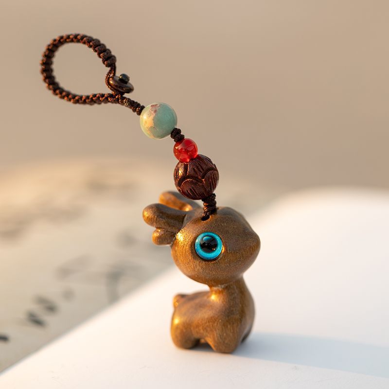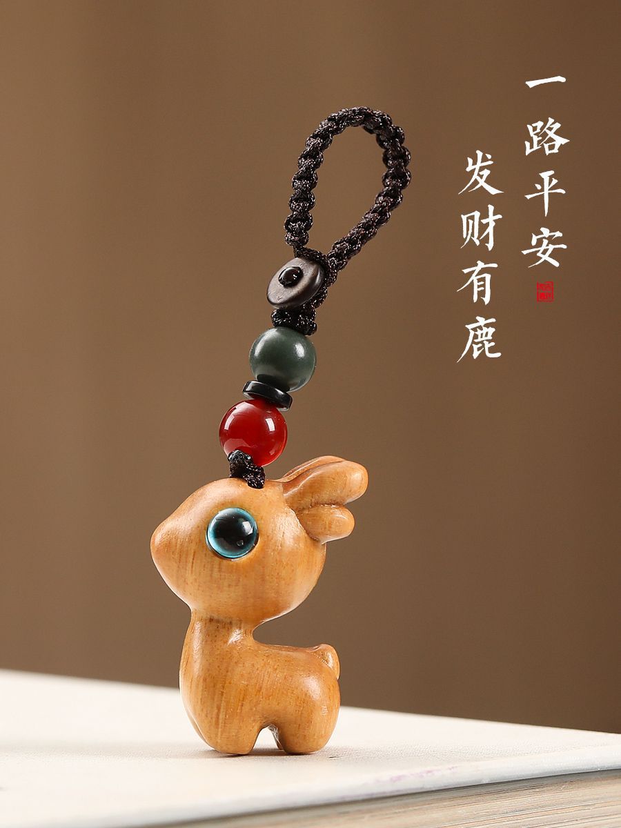 一路檀木小鹿自動車のキーホルダーは男女カップルの携帯電話のペンダントです。