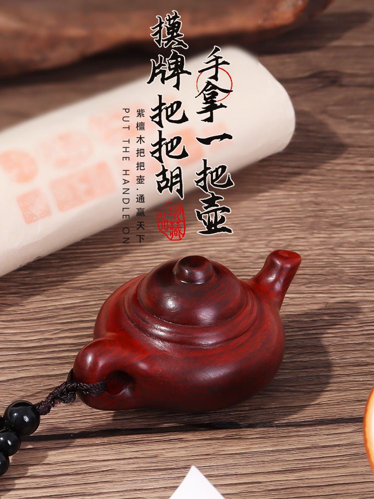 マージャンポットのハンドルの小さいティーポットの父の日のプレゼントの文は木彫りのペンダントを遊びます。
