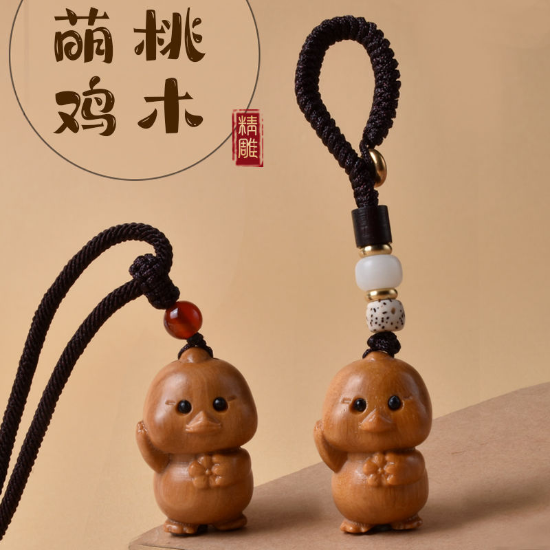 桃木生肖鶏自動車のキーホルダーは男女の創意的な小鶏の鍵を掛けて携帯チェーンのペンダントを飾ります。