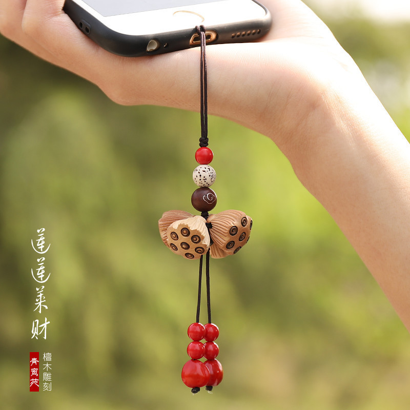 Lianlian~ピーチウッドロータス携帯電話チェーンストラップ中国風編組小豆菩提ペンダントカップルスタイル手作り