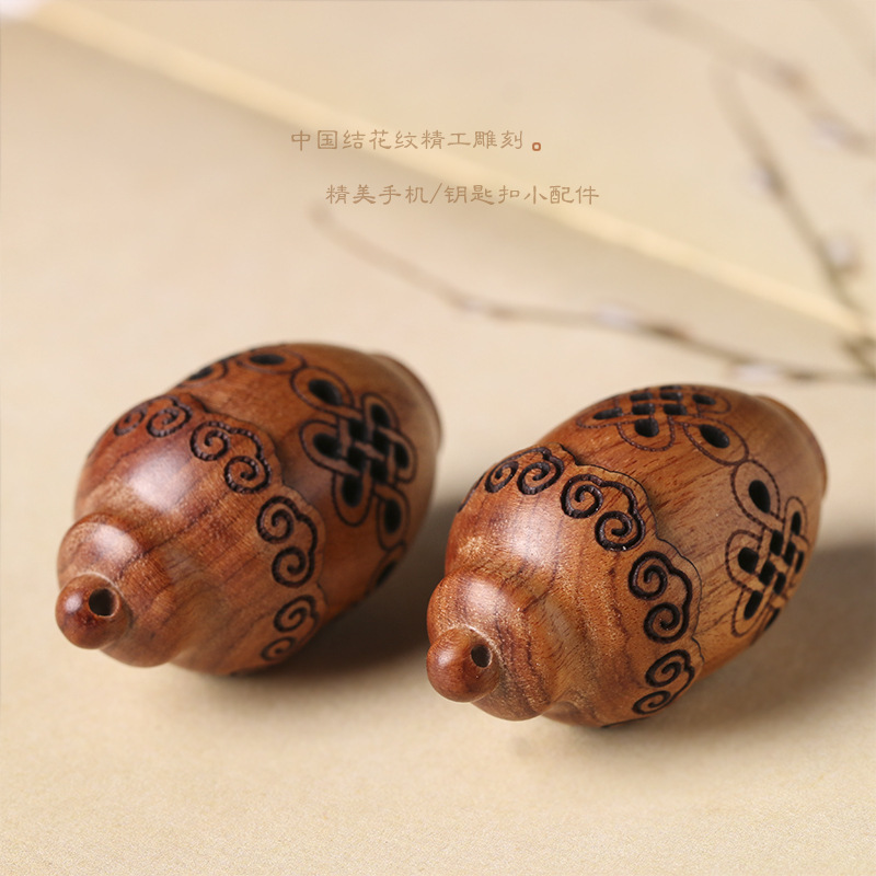花梨の透かし彫りの香りの袋のヒョウタンの花瓶のペンダントの木の彫刻の拡香器の装飾品のキーホルダーの携帯電話のペンダント