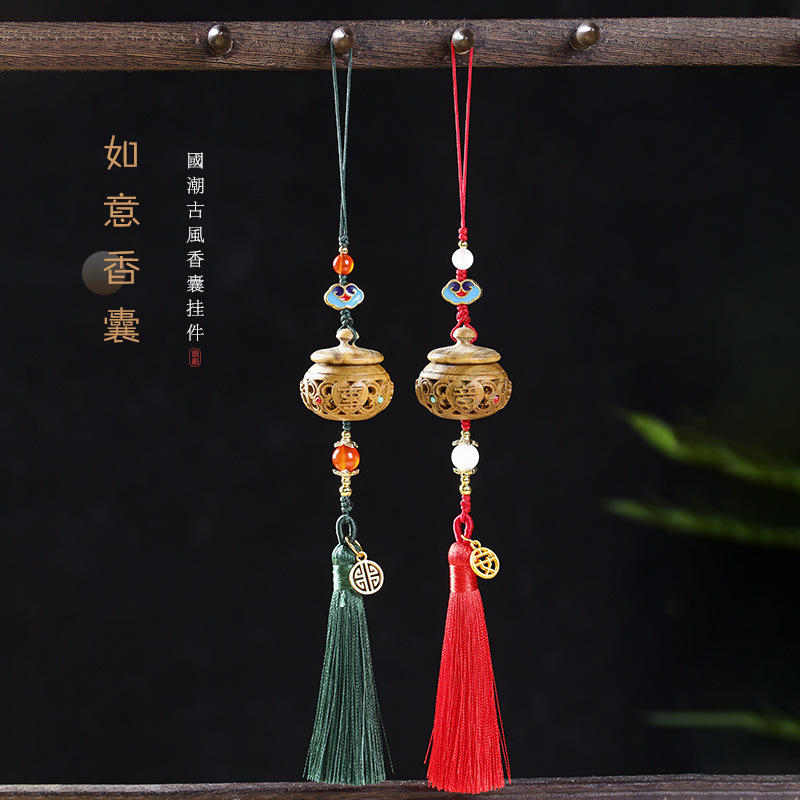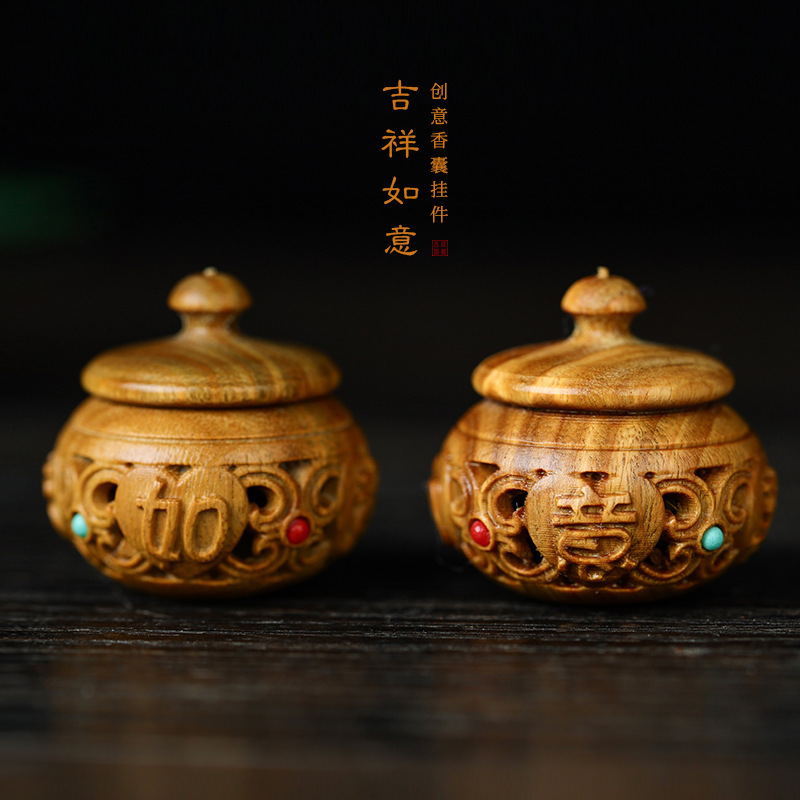 文芸創意DIY万事如意香嚢緑檀レトロ彫刻花香薫拡香器車掛携帯電話カバン掛け