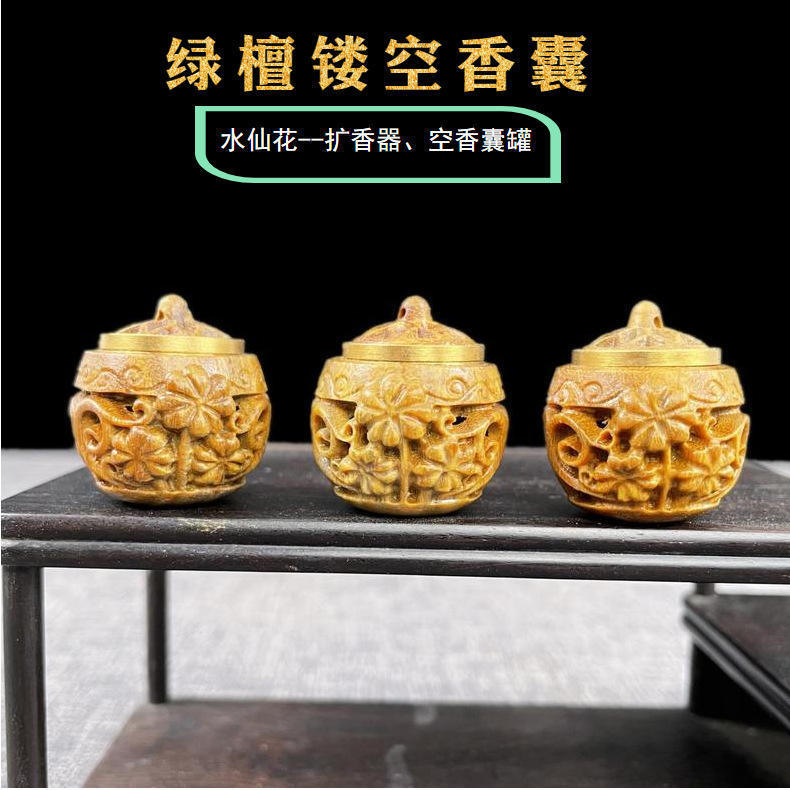 新商品の緑檀水仙提灯香嚢空缶木製拡香器創意携帯チェーンチェーン