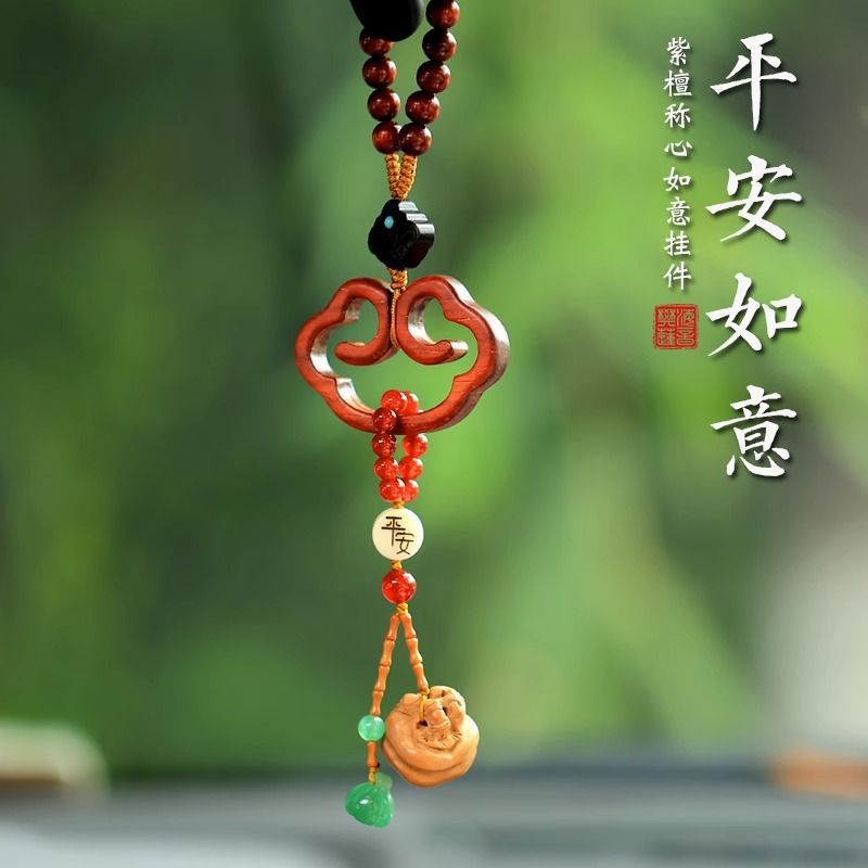 ロック自動車ストラップ車内ストラップ2023新型車載バックミラーストラップ男性女性国風紫檀