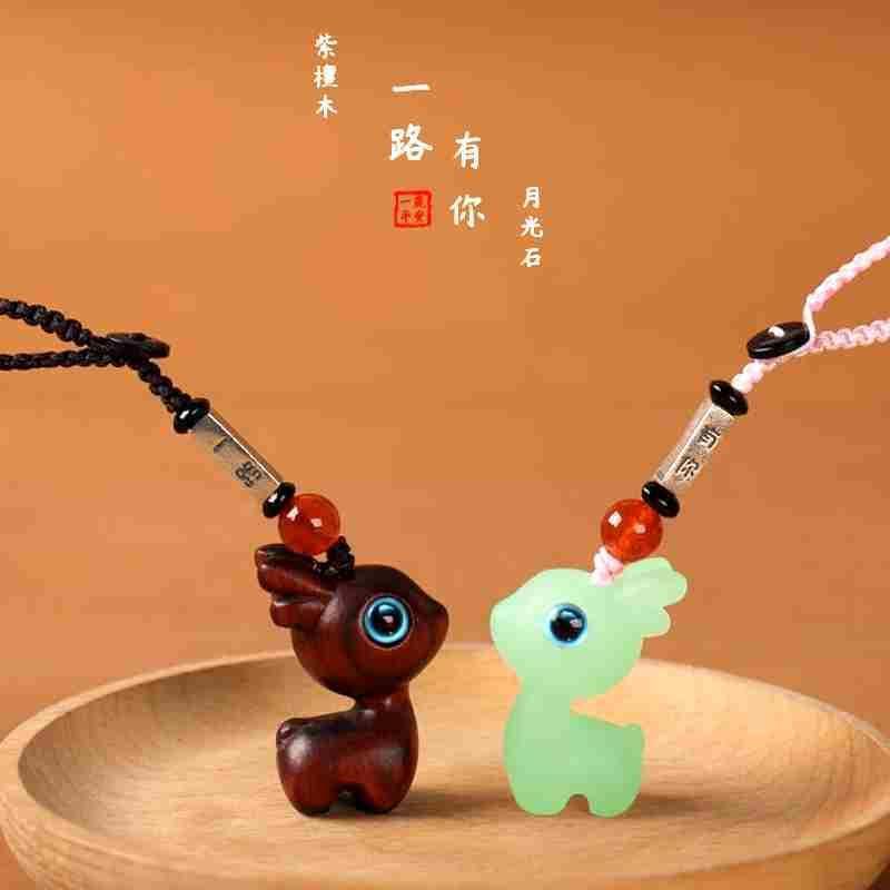 ネットの赤いキーはカップルのタイプの檀木の鹿の女性の1対の携帯電話のペンダントのキーチェーンを掛けます。
